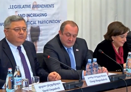 საქართველოს პრეზიდენტი გიორგი მარგველაშვილი და საქართველოს პარლამენტის თავმჯდომარე დავით უსუფაშვილი ქალთა პოლიტიკური მონაწილეობის საკითხებზე გამართულ შეხვედრაში მიიღეს მონაწილეობა.