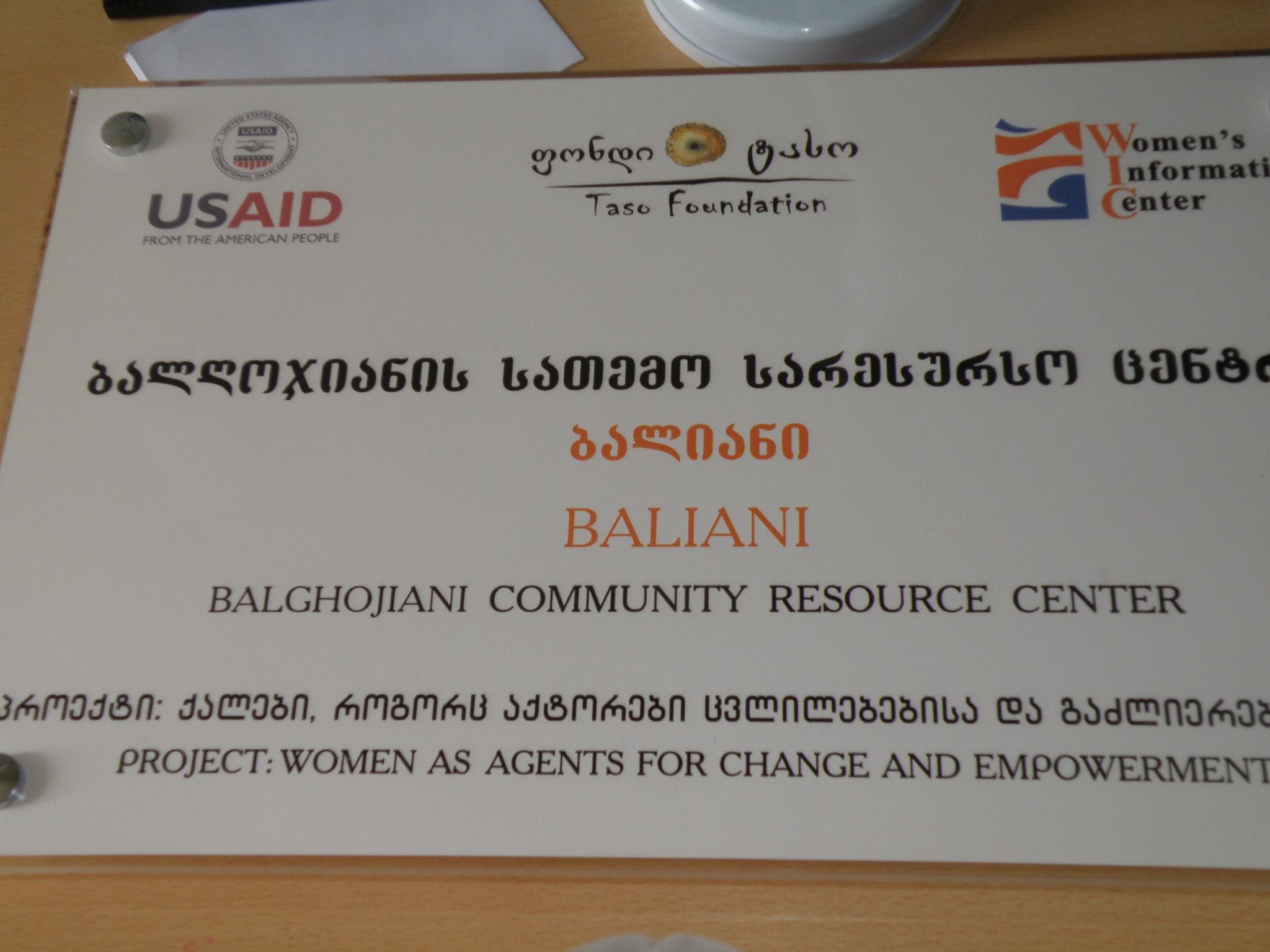 პროექტის "ქალები, როგორც აქტორები ცვლილებებისა და გაძლიერებისთვის" ფარგლებში 15 ივნისს, ბალღოჯიანის რესურს ცენტრში მონიტორინგის მიზნით "ქალთა საინფორმაციო ცენტრი"–ს ხელმძღვანელი –ელენე რუსეცკაია და პროექტის კოორდინატორი – მაია გრძელიშვილი იმყოფებოდნენ.